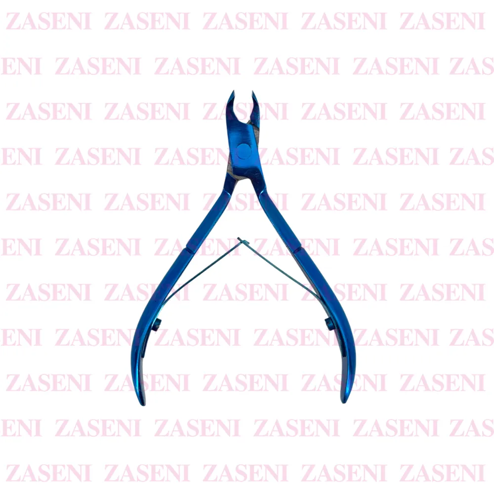 Alicate profesional de 2mm con bonito diseño de color azul eléctrico especialmente diseñado para eliminar las cutículas y pieles muertas de las uñas adaptándose fácilmente a la mano gracias a su ergonómica forma.