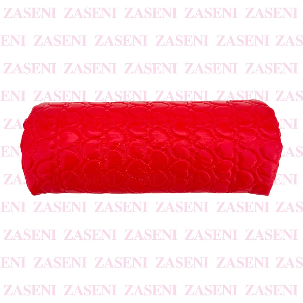 Cojín apoyamanos con exterior en polipiel y bonito diseño de corazones diseñado para realizar la manicura de forma cómoda y práctica.