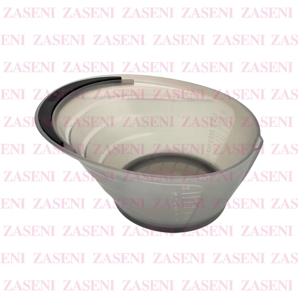 Bol translúcido grande con asa y aro antideslizantes especialmente diseñado para mezclar el tinte durante los trabajos de coloración consiguiendo una mezcla uniforme para una aplicación precisa.