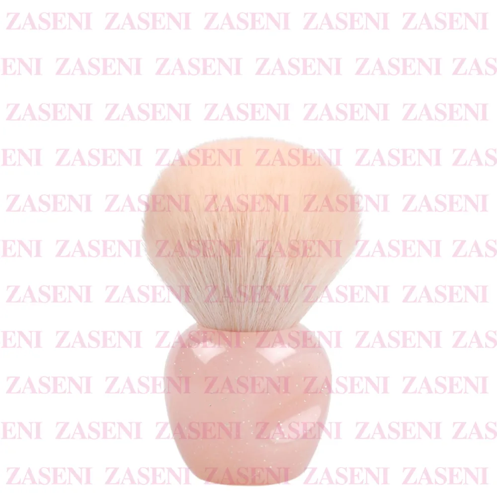 Brocha con base en color rosa nude con purpurina especialmente diseñada para limpiar el polvo que se forma durante el limado de uñas proporcionando un trabajo cómodo y limpio para conseguir una manicura perfecta.