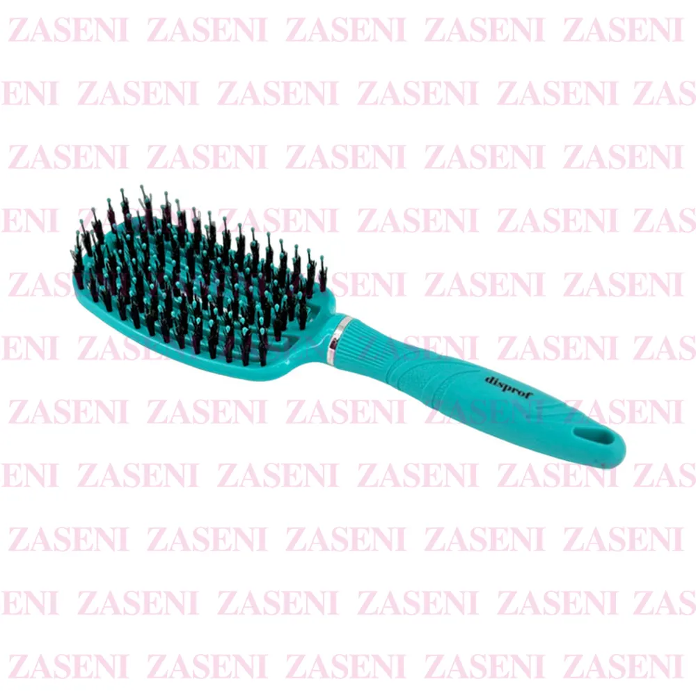 Cepillo con forma curva hecho con cerdas de jabalí y nylon especialmente diseñado para desendar y cuidar el cabello a la vez que le aporta un gran brillo y volumen consiguiendo un peinado perfecto.