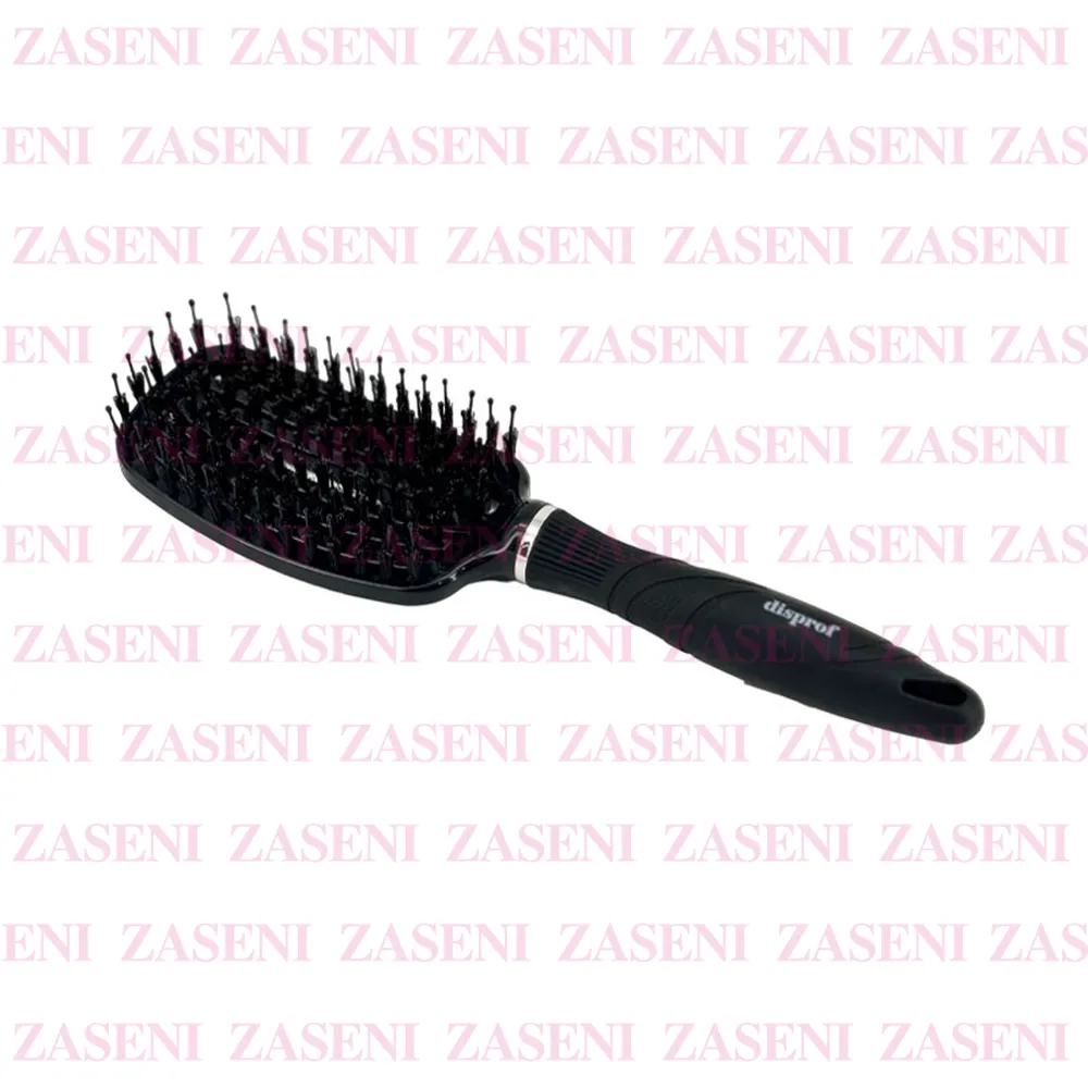 Cepillo con forma curva hecho con cerdas de jabalí y nylon especialmente diseñado para desendar y cuidar el cabello a la vez que le aporta un gran brillo y volumen consiguiendo un peinado perfecto.