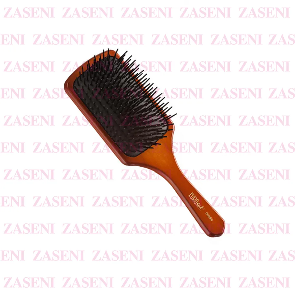 Cepillo pala grande con púas de plástico y mango de madera ideal para melenas largas que desenreda, alisa y suaviza.