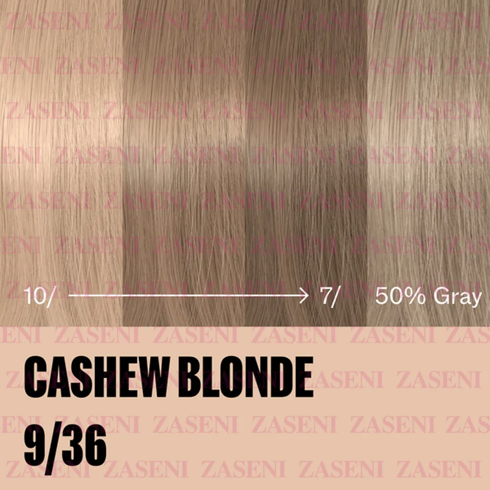 - Ofrece una amplia paleta de rubios, castaños y rojos que se pueden personalizar y mezclar a medida. Con el tono personalizado, se podrá realzar el color actual, aportar profundidad, cambiar el matiz e incluso lograr hasta un 100% de difuminado de canas en dos pasos para un acabado uniforme y rejuvenecido.