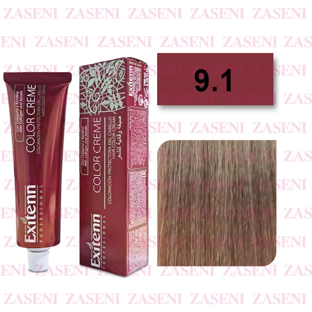EXITENN TINTE COLOR CREME 9.1 RUBIO CLARÍSIMO CENIZA 100ML