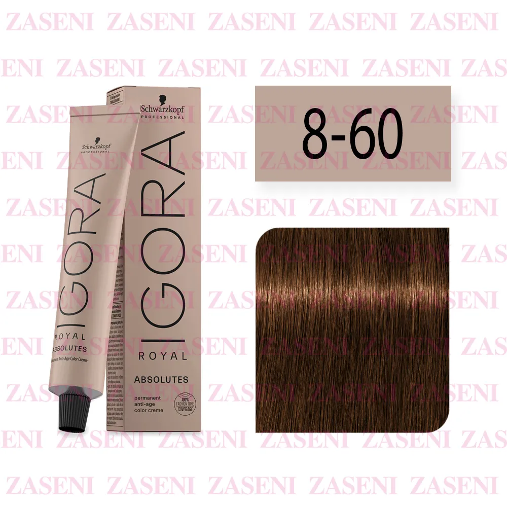 SCHWARZKOPF TINTE IGORA ROYAL ABSOLUTES 8-60 RUBIO CLARO CHOCOLATE NATURAL 60ML