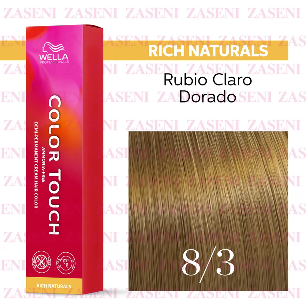 WELLA TINTE COLOR TOUCH RICH NATURALS 8/3 RUBIO CLARO DORADO 60ML
