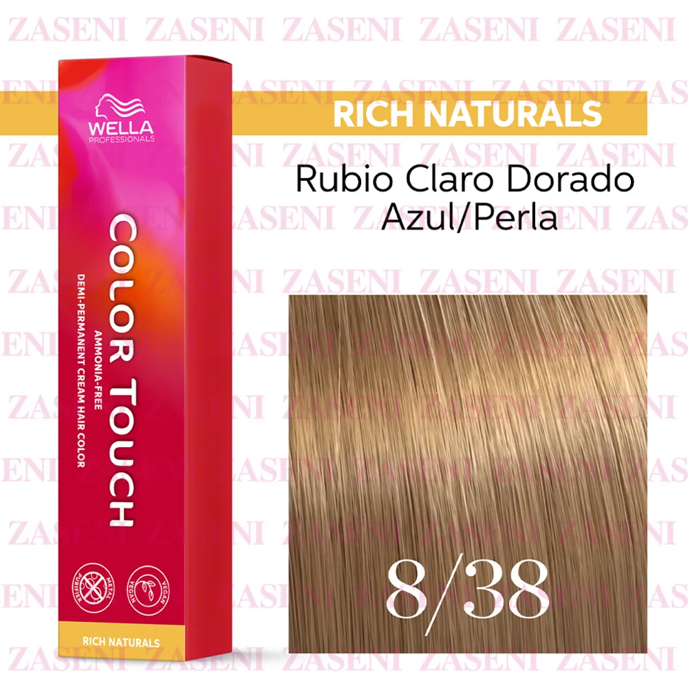 WELLA TINTE COLOR TOUCH RICH NATURALS 8/38 RUBIO CLARO DORADO PERLA 60ML