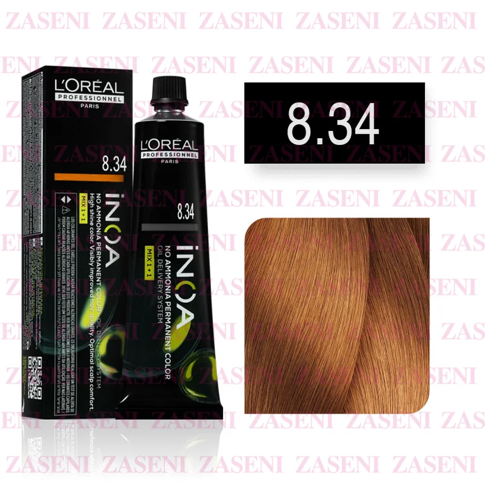 L'ORÉAL TINTE INOA Nº 8.34 RUBIO CLARO DORADO COBRIZO 60ML.
