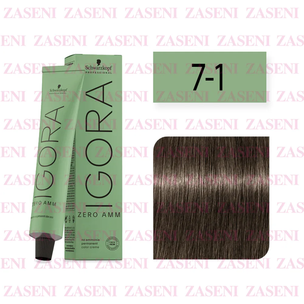 SCHWARZKOPF TINTE IGORA ZERO AMM 7-1 RUBIO MEDIO CENIZA 60ML