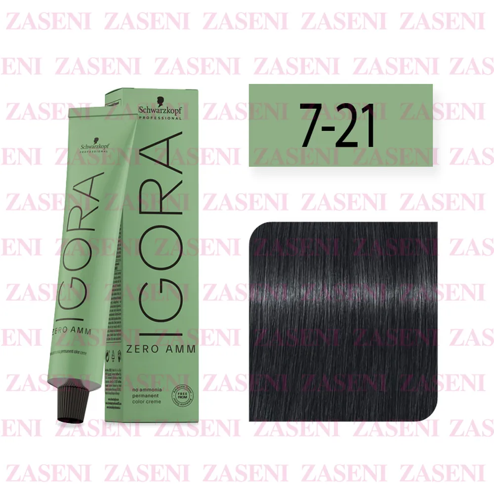 SCHWARZKOPF TINTE IGORA ZERO AMM 7-21 RUBIO MEDIO HUMO CENIZA 60ML