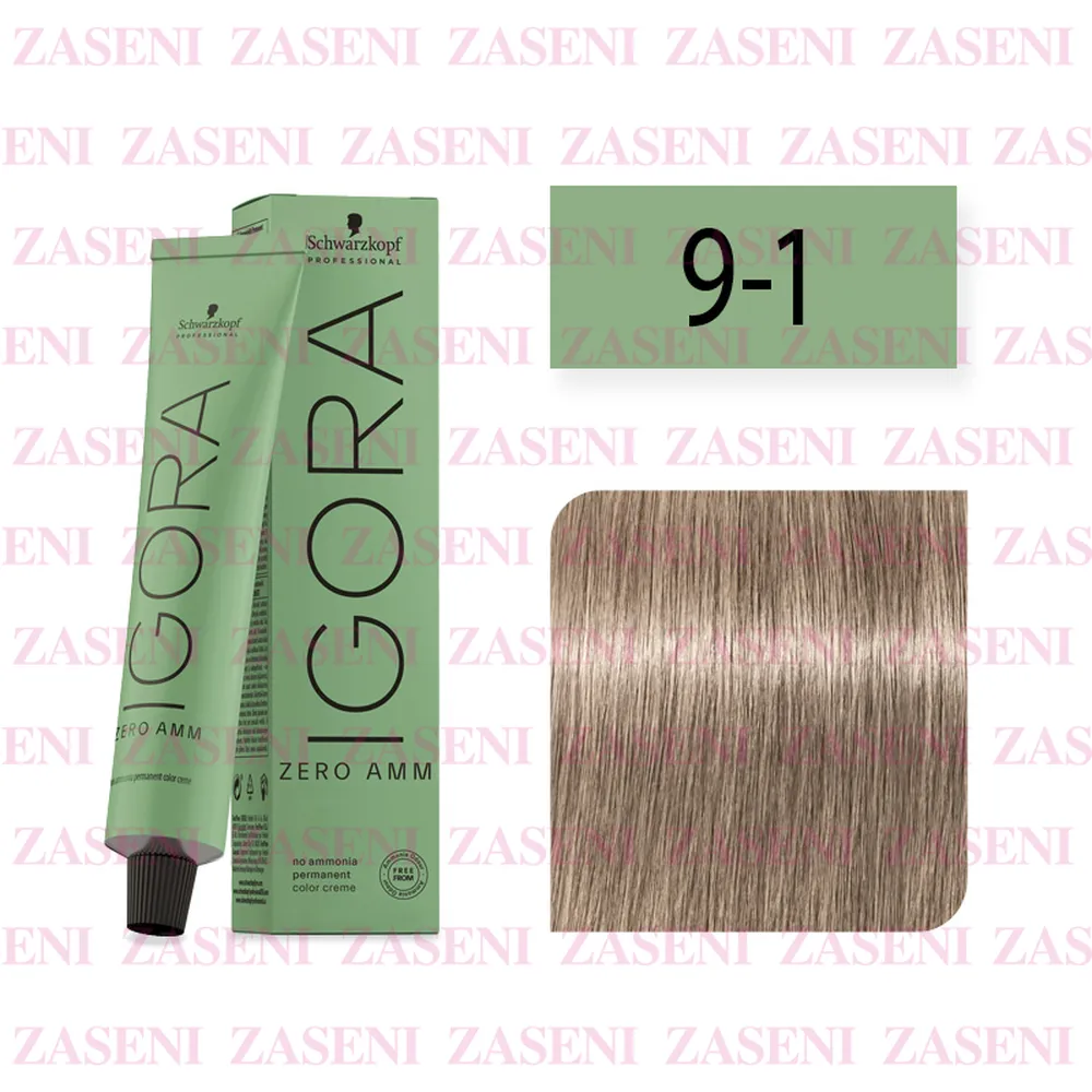 SCHWARZKOPF TINTE IGORA ZERO AMM 9-1 RUBIO MUY CLARO CENIZA 60ML