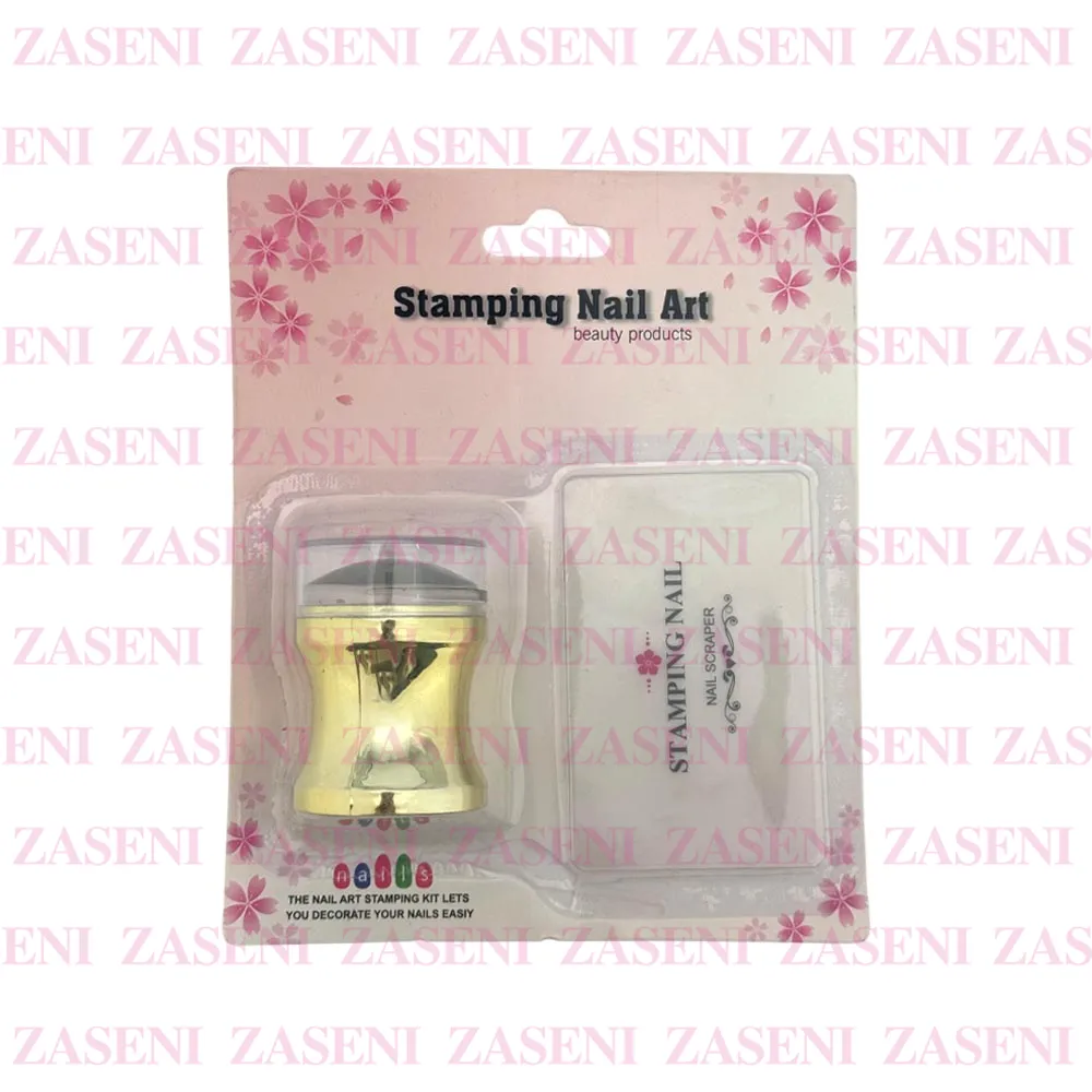 Kit con sello estampador de silicona y raspador para distribuir el esmalte de manera uniforme diseñado para conseguir bonitos diseños en las uñas de manera fácil y exacta.