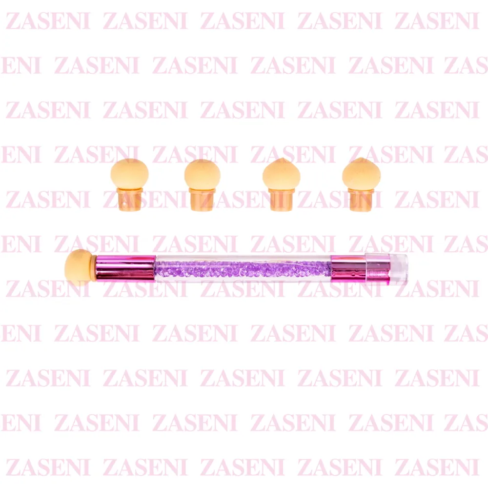 Pincel con esponja y estampador para realizar degradados y estampados de uñas durante el trabajo de manicura.