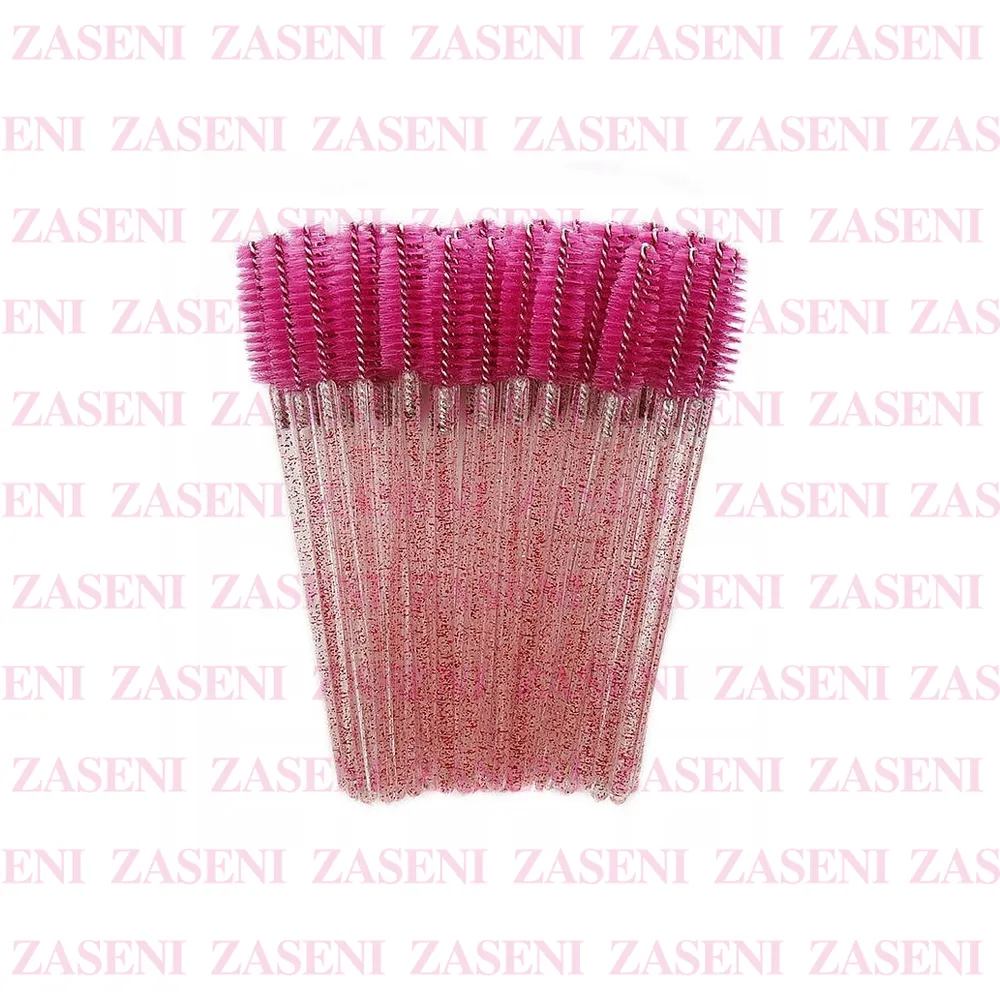 Cepillos para cejas y pestañas de color rosa con purpurina diseñados para peinar las cejas y pestañas dándoles forma, aplicar rímel o eliminar restos de maquillaje.