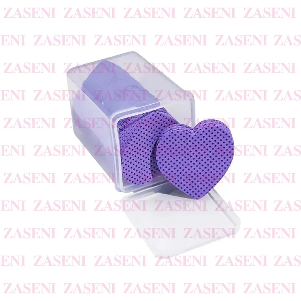 Toallitas de celulosa con forma de corazón en color lila diseñadas para limpiar suave y cuidadosamente las pestañas y uñas sin dejar pelusa.