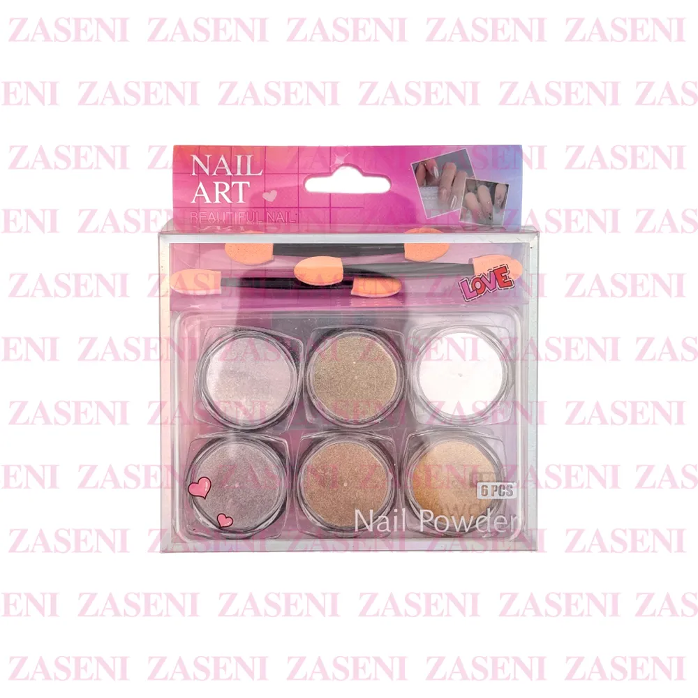 NAIL ART SET POLVO ESPEJO COLORES METALIZADOS CLAROS 6UDS
