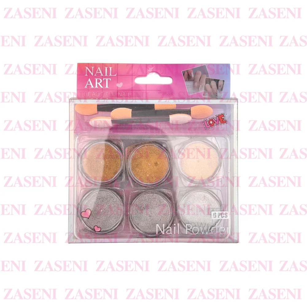 NAIL ART SET POLVO ESPEJO DORADO Y PLATEADO 6UDS