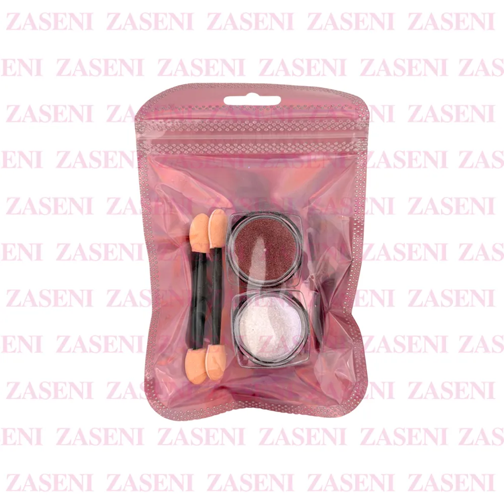 - 2 botecitos de polvo de uñas de diferentes tonos y texturas.