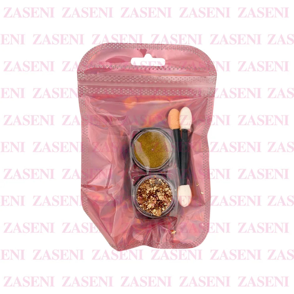 - 2 botecitos de polvo de uñas de diferentes tonos y texturas.