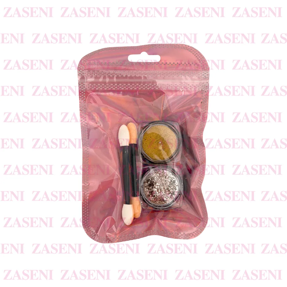 - 2 botecitos de polvo de uñas de diferentes tonos y texturas.