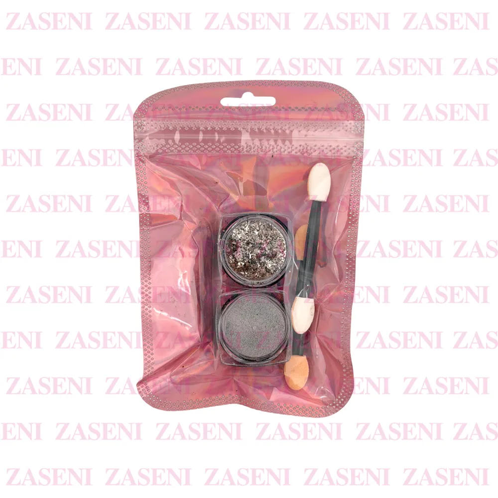- 2 botecitos de polvo de uñas de diferentes tonos y texturas.