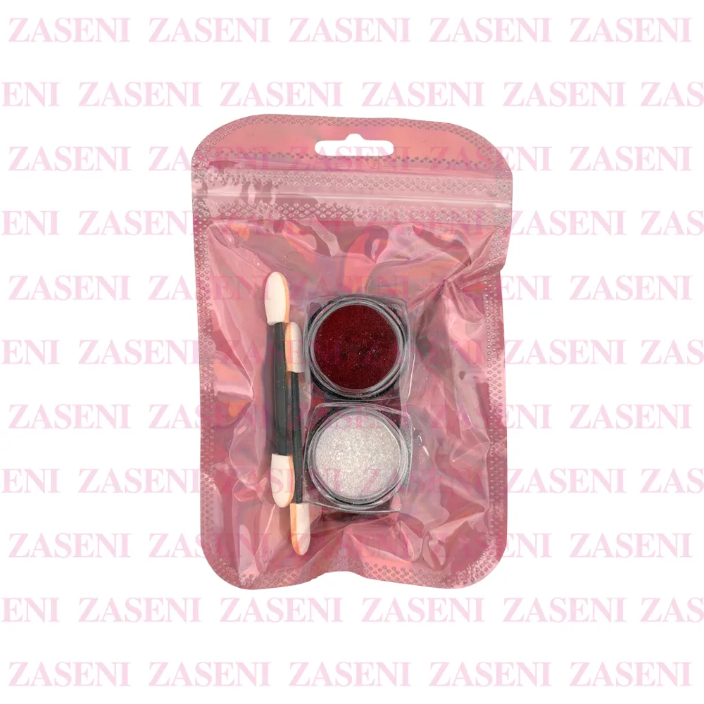 - 2 botecitos de polvo de uñas de diferentes tonos y texturas.