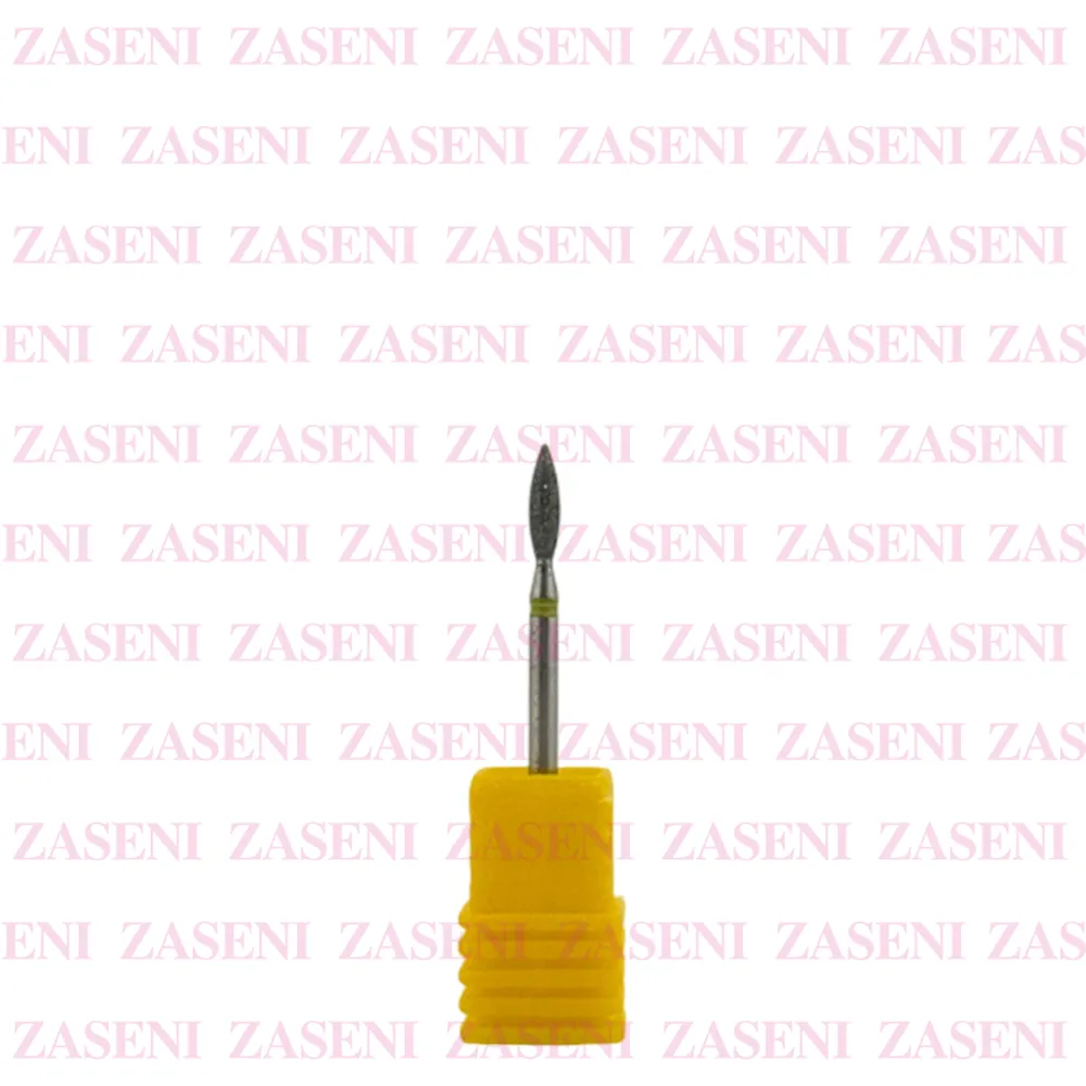 Fresa de carburo de tungsteno con recubrimiento de titanio con forma de llama de diamante y gramaje extrafino diseñada para preparar la uña natural, limpiar cutícula y pulir zonas difíciles.