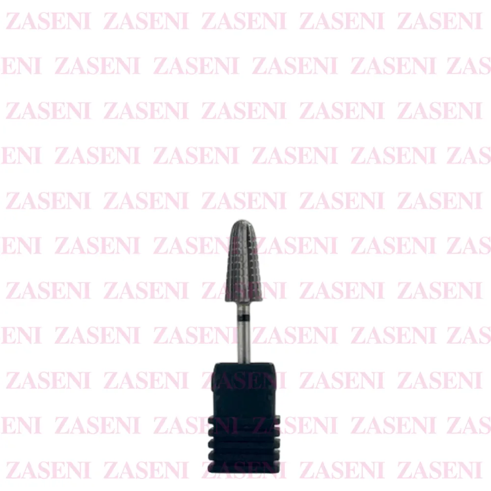 Fresa de carburo de tungsteno con forma cónica redondeada corta y gramaje extragrueso ideal para trabajar zonas laterales y cutícula sin dañar la piel, rebajando mucho producto de manera muy rápida.