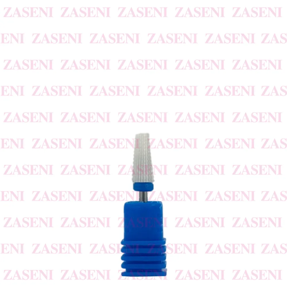 Fresa de cerámica con forma cónica corta y gramaje medio ideal para trabajar zonas laterales y cutícula sin dañar la piel, usándose de manera general para limar producto o rebajar de forma moderada gel o acrílico.