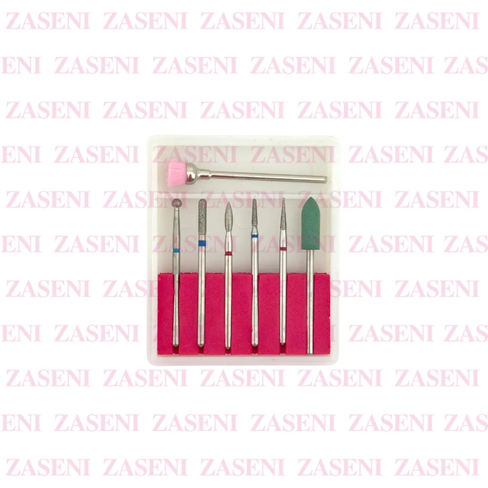 Kit compuesto por fresas de distintas formas especialmente diseñadas para utilizar con torno de uñas durante el pulido de uñas.