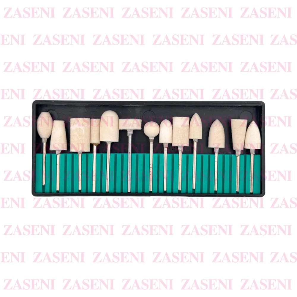Kit compuesto por fresas de fieltro blancas de distintas formas especialmente diseñadas para utilizar con torno de uñas durante el pulido de uñas, siendo ideales para dar el toque final, eliminar residuos de polvo o dejar un efecto espejo sobre acrílico o gel.