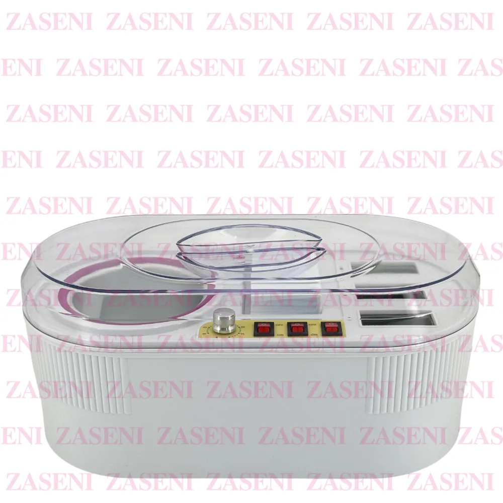 Calentador de cera de diseño compacto, resistente y funcional con cazoleta de aluminio y tapa transparente y resistente para proteger la cera consiguiendo un trabajo práctico y cómodo.