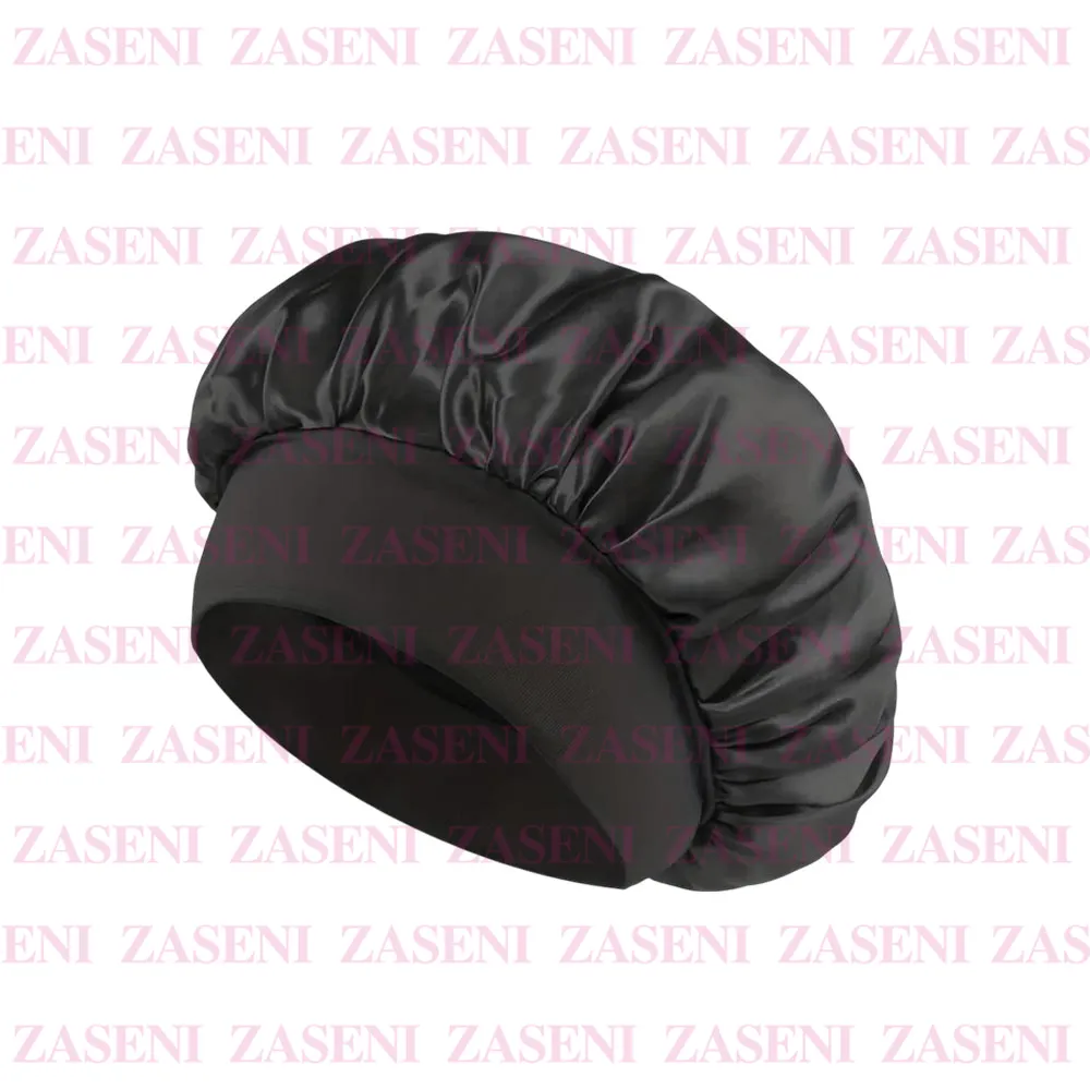 Gorro de satén de textura suave diseñado para proteger el cabello durante el sueño reduciendo el frizz, la rotura y la resequedad para mantener un cabello siempre perfecto, siendo ideal para cabello rizado, ondulado o tratado químicamente.