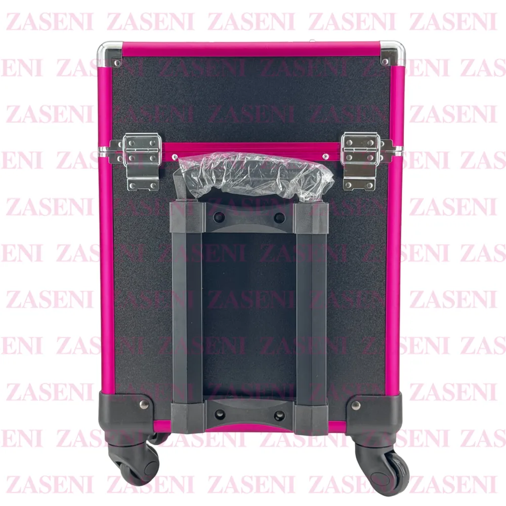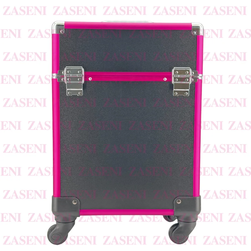 Maleta de almacenamiento profesional en un bonito color negro con bordes en fucsia metálico especialmente diseñada para guardar y organizar las herramientas de trabajo de manera eficiente y práctica asegurando un trabajo cómodo y seguro.