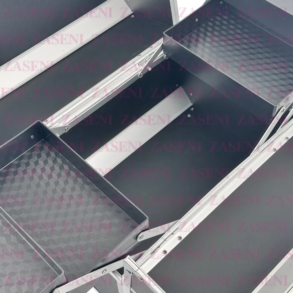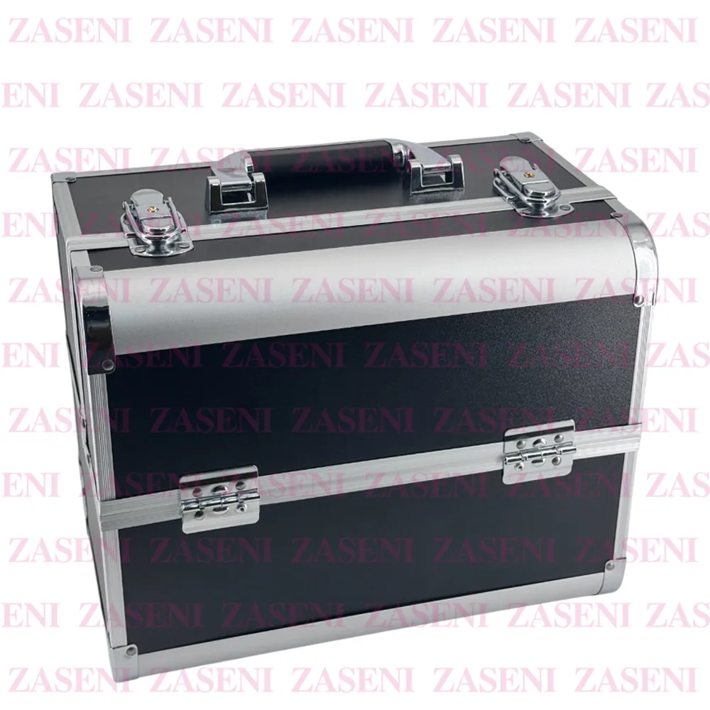 Maletín en un elegante color negro con bordes metálicos especialmente diseñado para guardar y organizar las herramientas de trabajo de manera eficiente y práctica asegurando un trabajo cómodo y seguro.