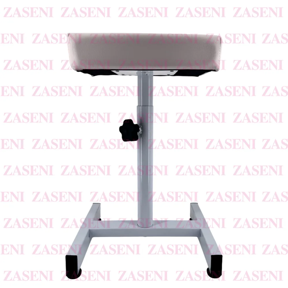 Reposapiés de diseño ergonómico y ajustable especialmente diseñado para apoyar los pies durante la realización de tratamientos de pedicura y cuidado de los pies consiguiendo un soporte firme y estable para un trabajo más cómodo y eficiente.