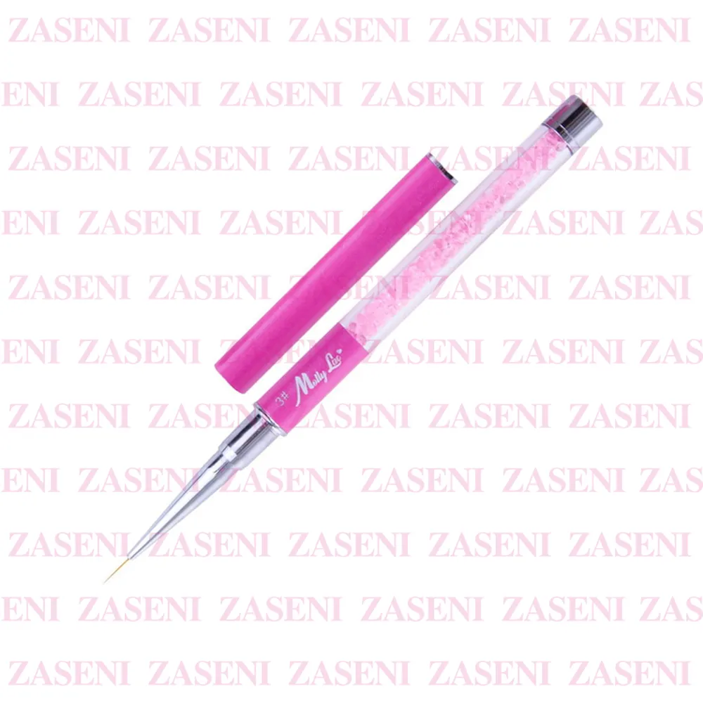 Pincel fino para decoraciones y dibujos con un grosor de 11mm de color rosa y con piedrecitas.