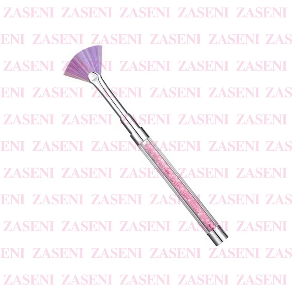 Pincel con forma de abanico y bonito diseño con piedrecitas rosas en su interior diseñado para crear degradados de color o texturas en las uñas consiguiendo un efecto único.