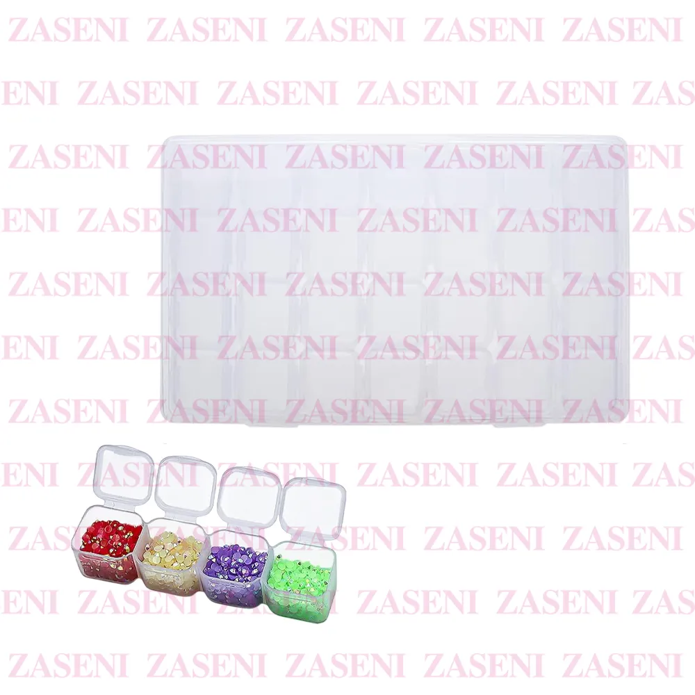 Caja de almacenamiento con 28 compartimentos diseñada para almacenar y guardar las piedras y diferentes piezas decorativas de uñas garantizando un espacio organizado y práctico.