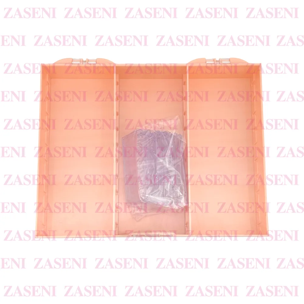Caja de almacenamiento de uñas y productos de manicura con varias cuadrículas diseñada para guardar gran variedad de decoraciones de uñas de manera separada consiguiendo un espacio limpio y ordenado.