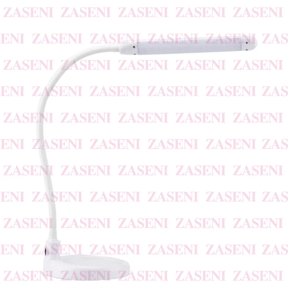 Lámpara de mesa flexible alargada con luz LED diseñada para iluminar durante el trabajo de manicura o cualquier tratamiento que requiera luz precisa y enfocada.