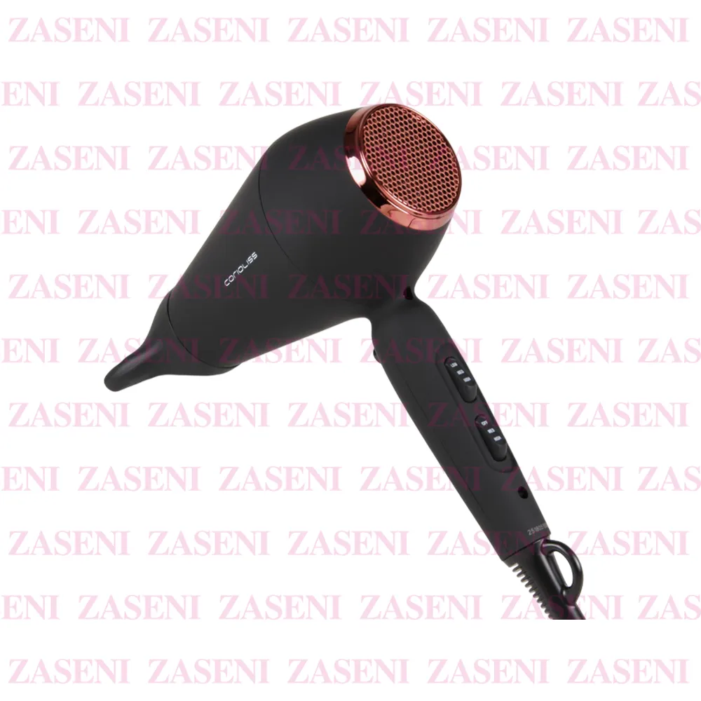 Kit de Edición Limitada compuesto por dos potentes herramientas profesionales de peinado, en un elegante y bonito color negro de acabado mate con detalles en color oro rosa cromado, que consiguen los mejores y más profesionales resultados en el cabello, la plancha C3 y el secador Kompactissimo de Corioliss.