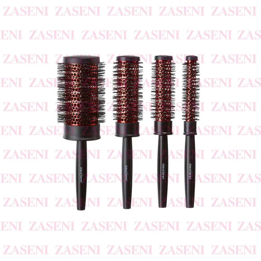 Pack de 4 cepillos térmicos antiestáticos con cerdas de nylon y mango de aluminio de 25, 35, 45 y 72 mm de diámetro.
