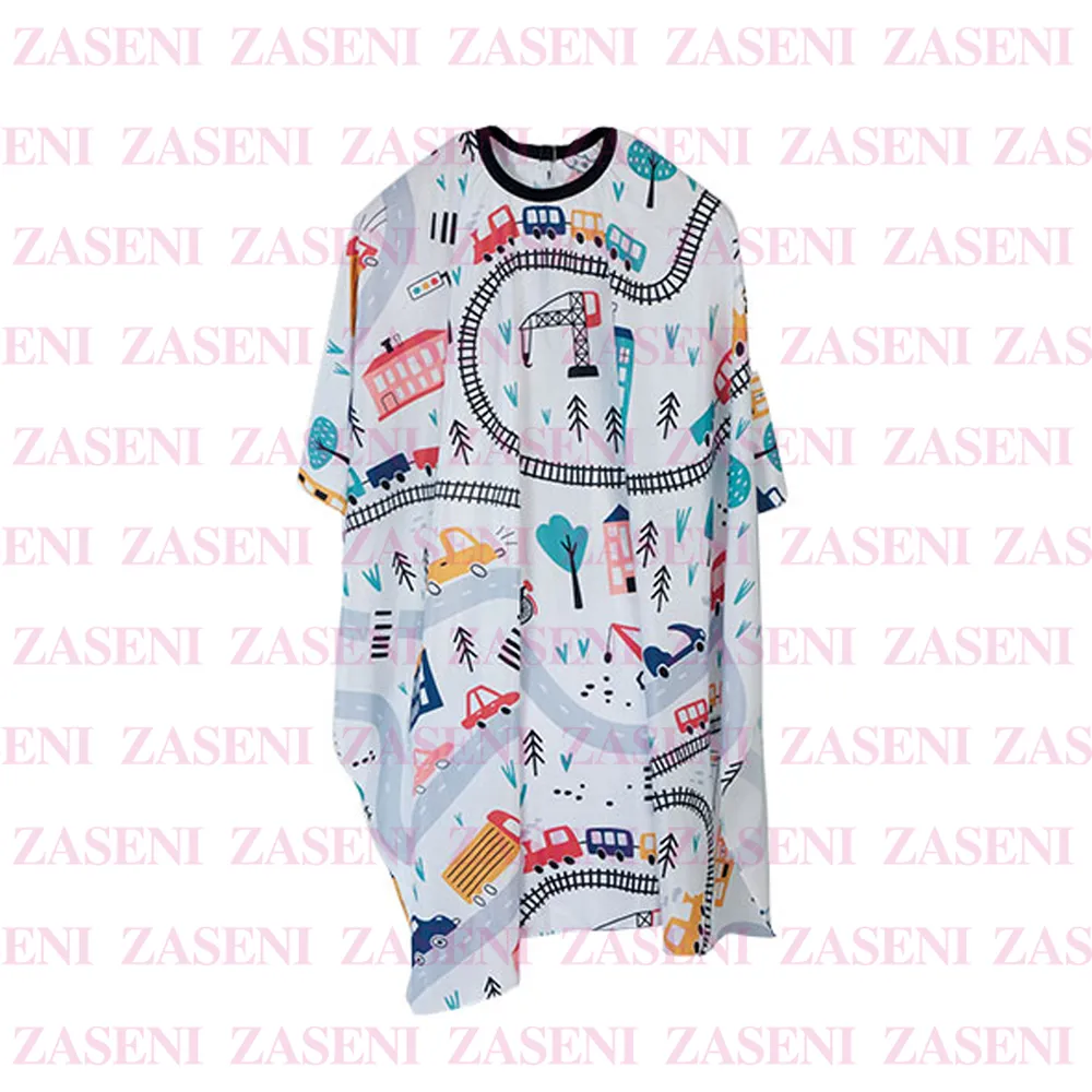 Capa con diseño infantil diseñada para proteger a los niños durante el corte de cabello evitando que les caigan los pelos encima para un trabajo limpio, cómodo y práctico.