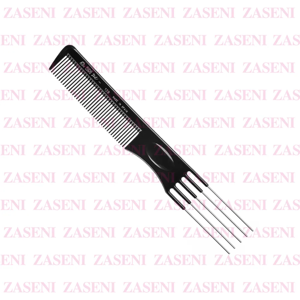 Peine profesional ahuecador con 5 púas de hierro que permite dividir el cabello en secciones de forma rápida y ordenada, siendo ideal para realizar mechas, reflejos u otros trabajos técnicos.