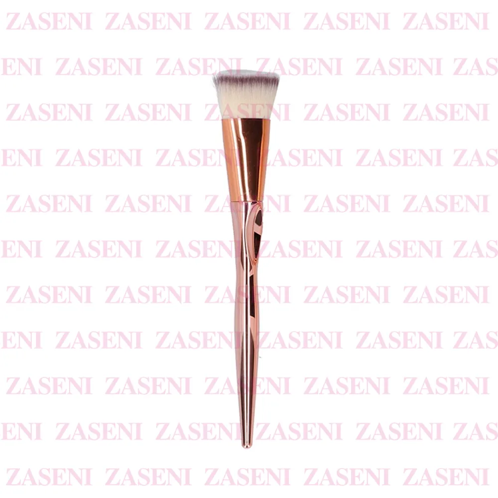 Brocha plana para realizar contorneado facial de manera rápida, cómoda y precisa en color oro rosa metalizado efecto espejo.