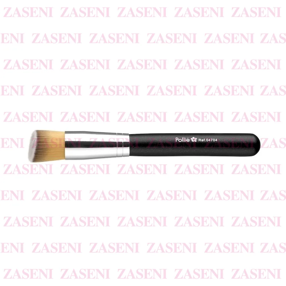 Pincel profesional con cerdas kabuki, densas y suaves, diseñado para adaptarse perfectamente a los contornos del rostro, siendo ideal para aplicar base, difuminar y contornear.