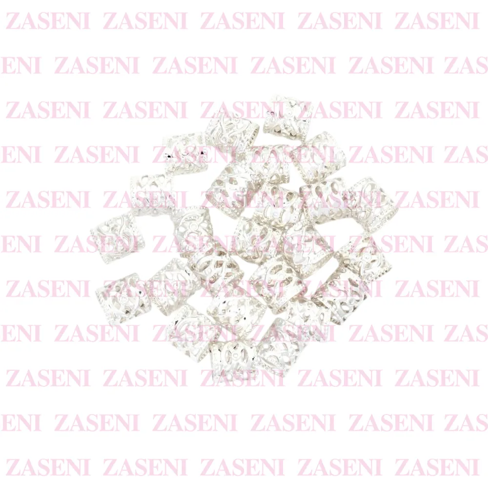 Anillas decorativas de tamaño 10mm de color plateado diseñadas para decorar el cabello colocando en trenzas, coletas o tiras de pelo.