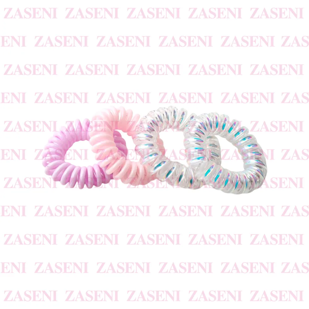 Gomas para el pelo con forma de espiral de diferentes acabados diseñadas para recoger y sujetar el cabello de forma fuerte y segura sin dañarlo.